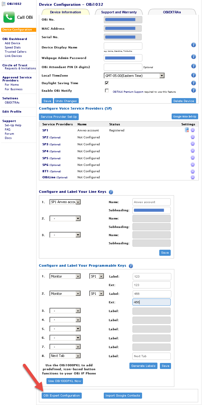 Configure OBI1022,OBI1032,OBI1062 for Anveo